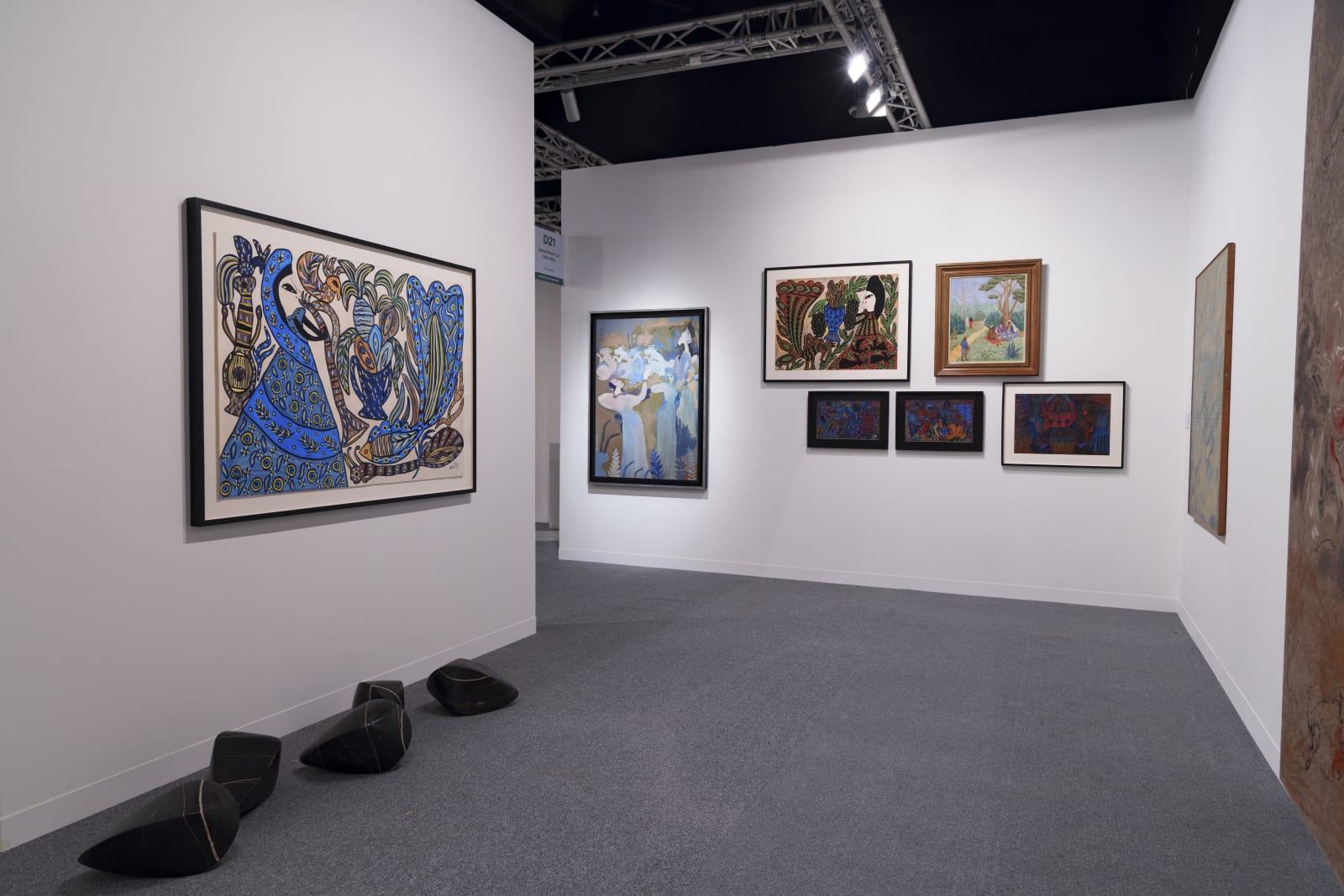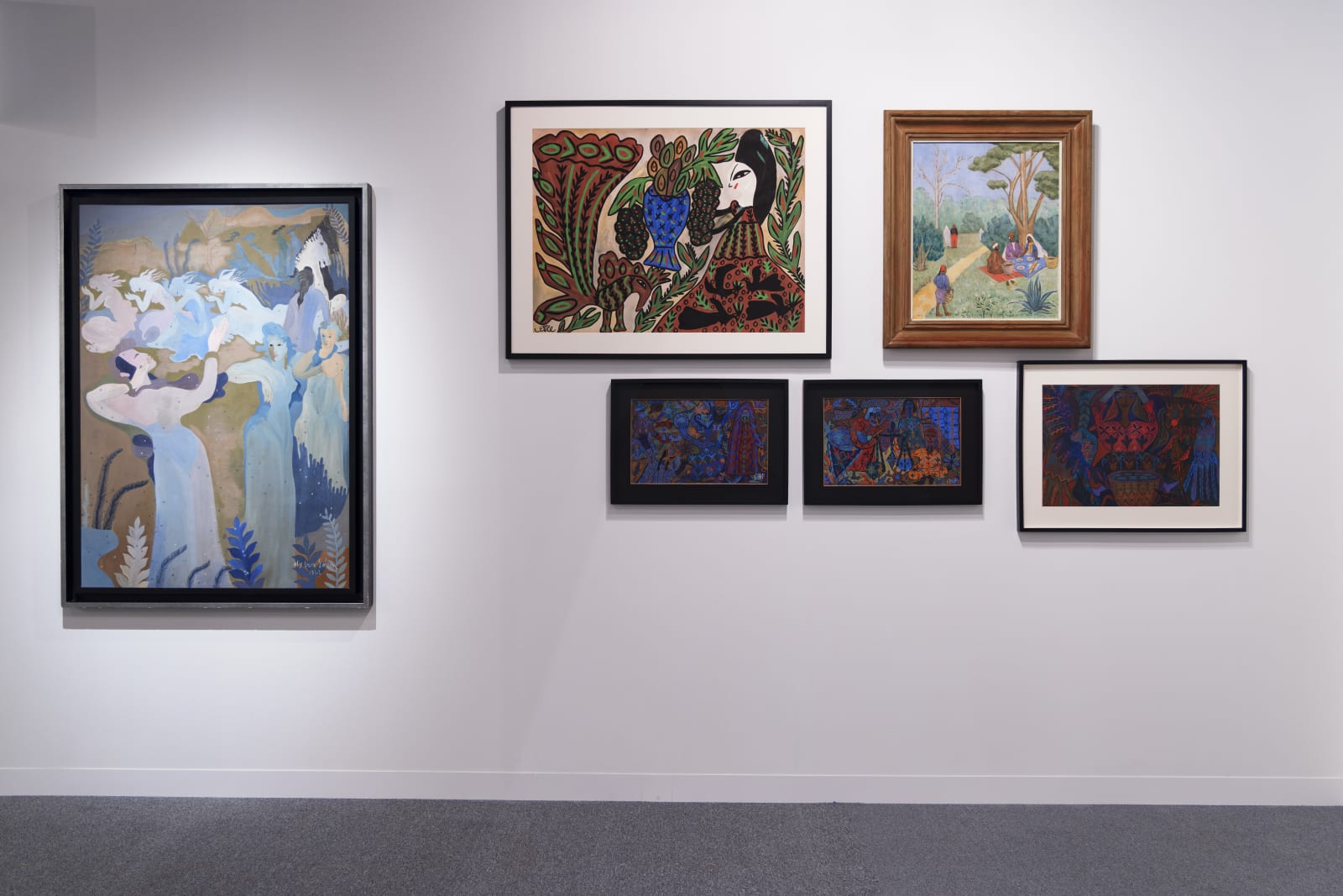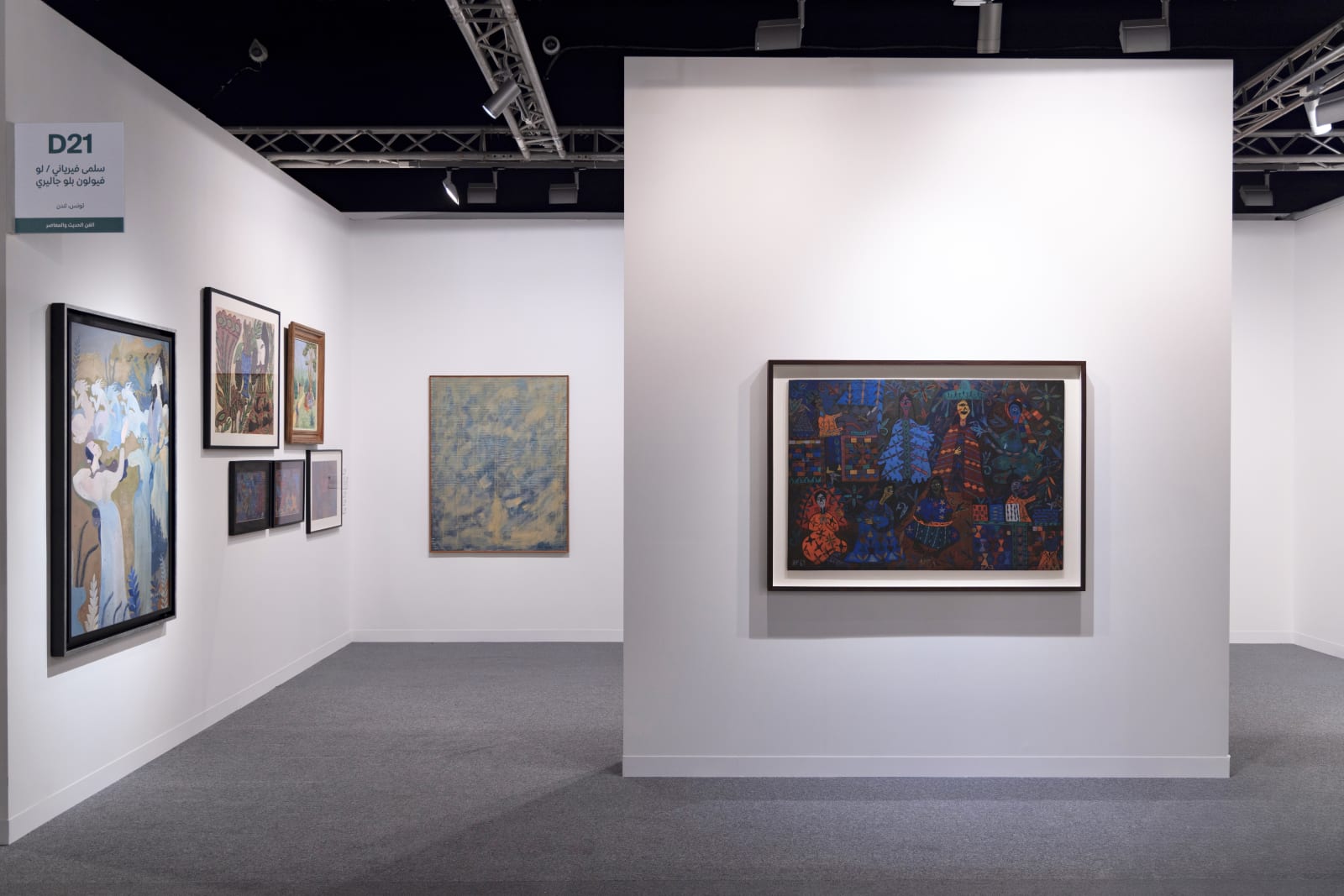 Our presentation brings together modern masters from North Africa — Fatima Hassan El Farouj, Baya, Hedi Turki, Farid Belkahia, Yahia Turki, and Aly Ben Salem — alongside contemporary voices such as Catalina Swinburn, Monia Ben Hamouda, and Elena Damiani.