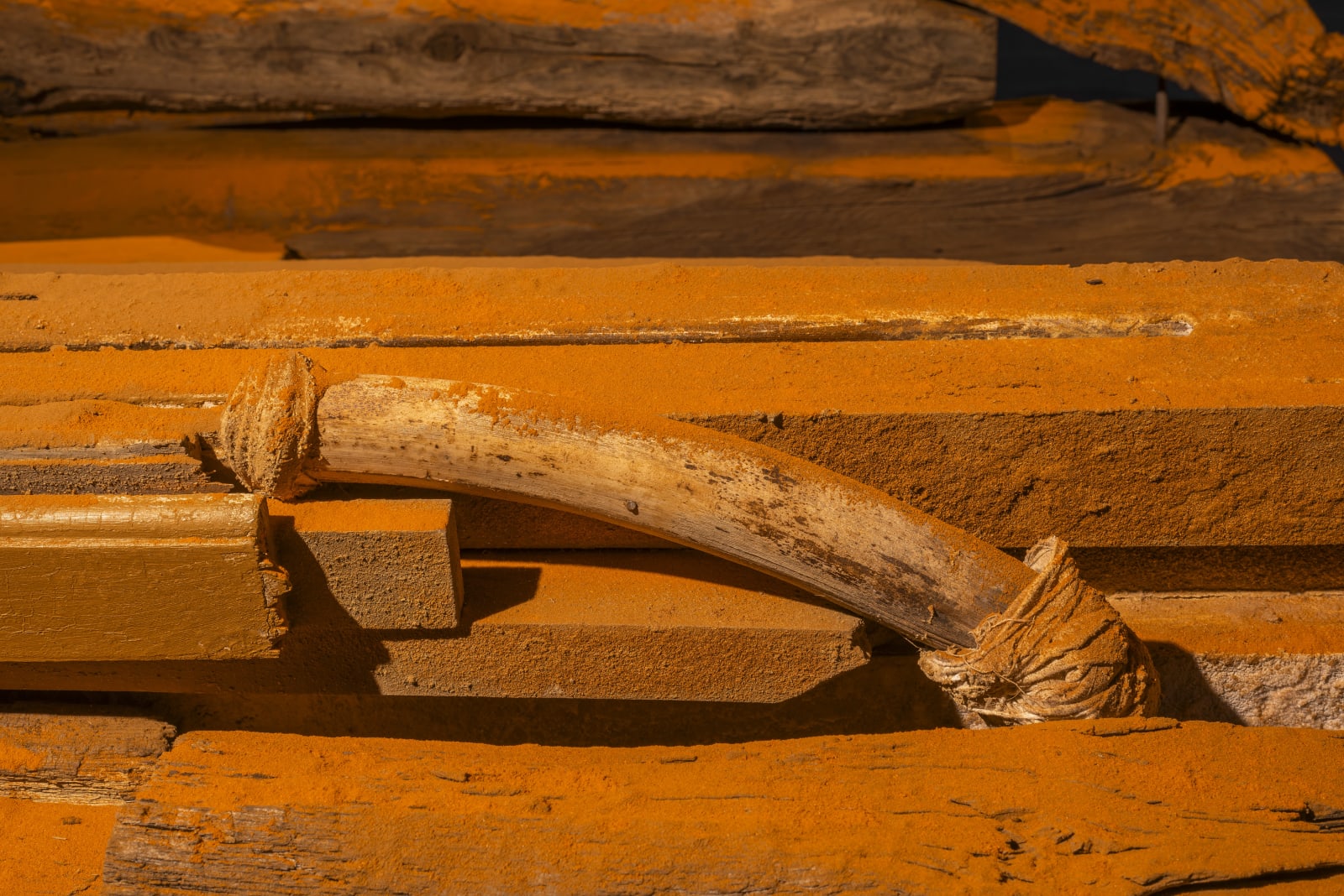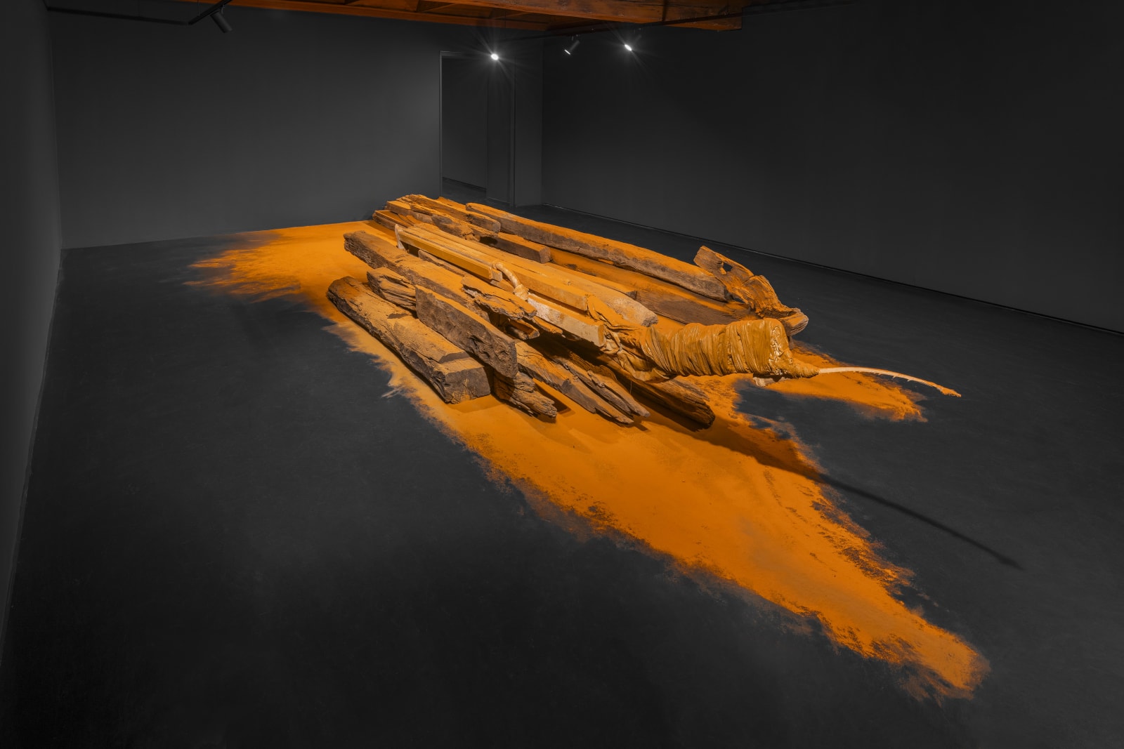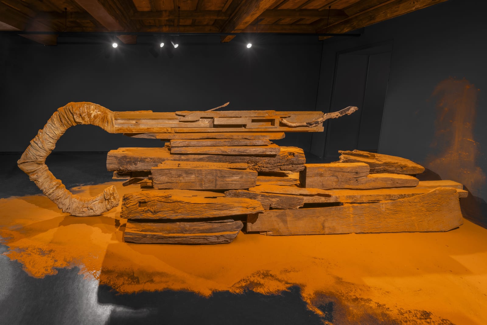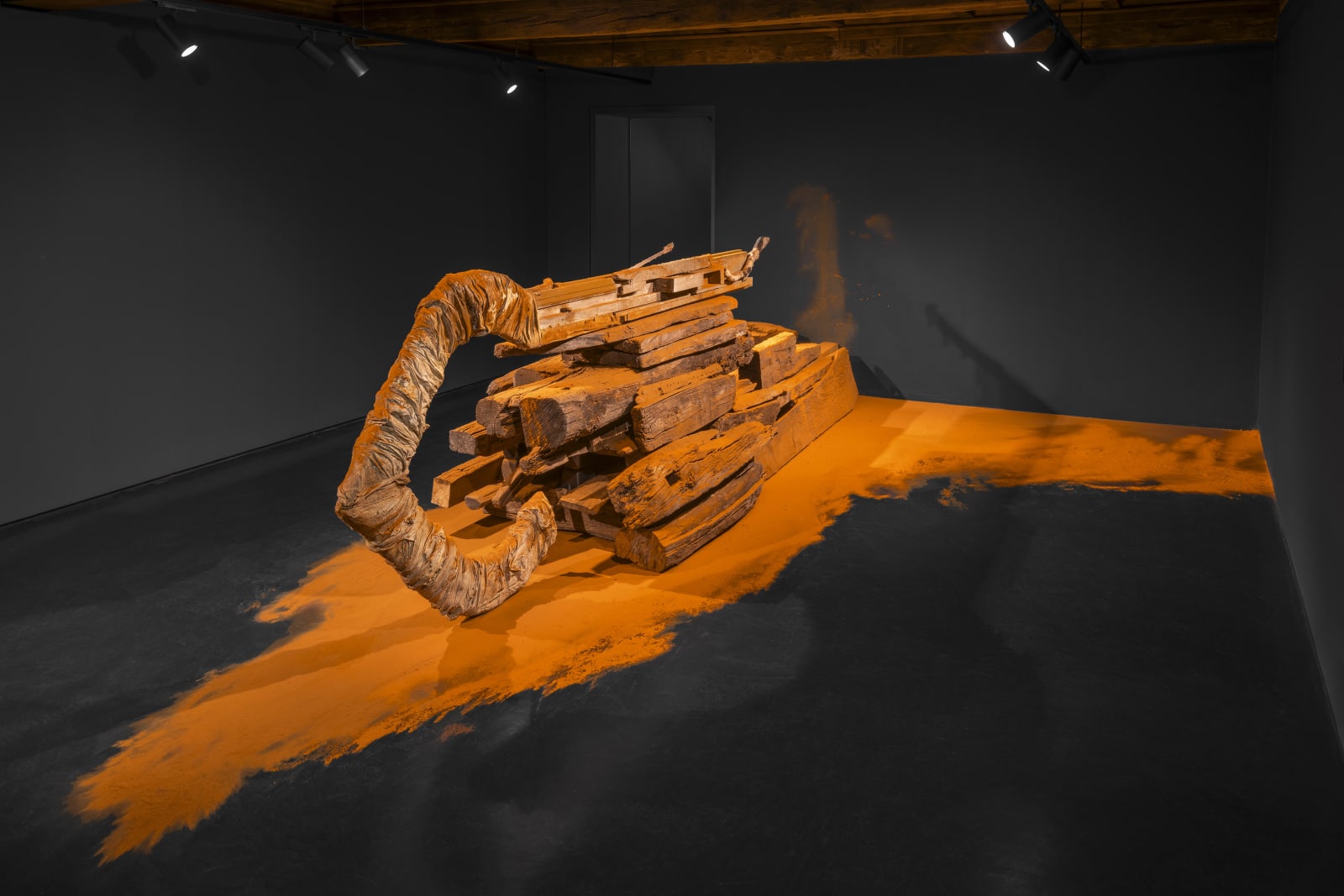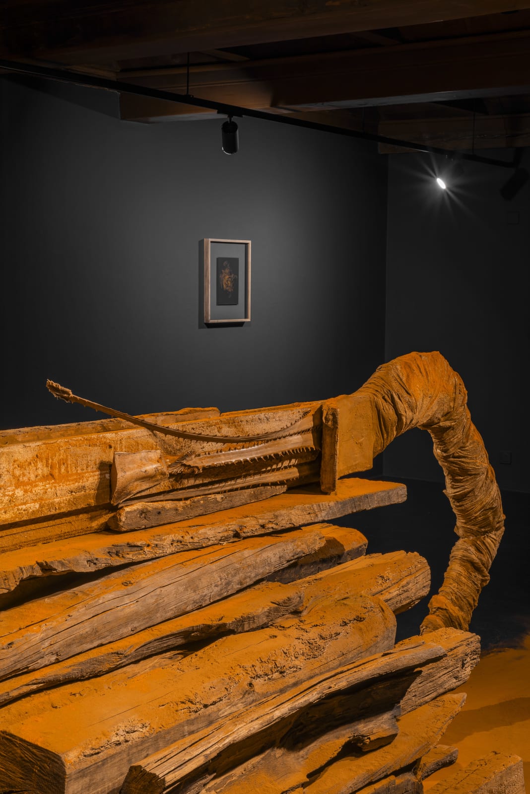 Over the past ten years, she has developed a distinctive artistic practice encompassing the creation of sculptures, installations, large-scale paintings, and drawings, using diverse materials ranging from iron to wood and, notably, spices. She is interested in spices not only for their color and aroma but also — and above all — for their meaning as healing, spiritual, or ritual elements.